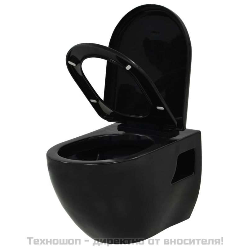 Окачена тоалетна чиния, керамична, черна