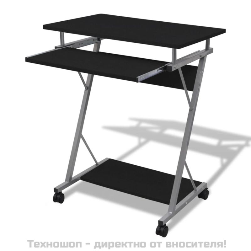 Бюро за компютър с изтеглящ плот за клавиатура, черно