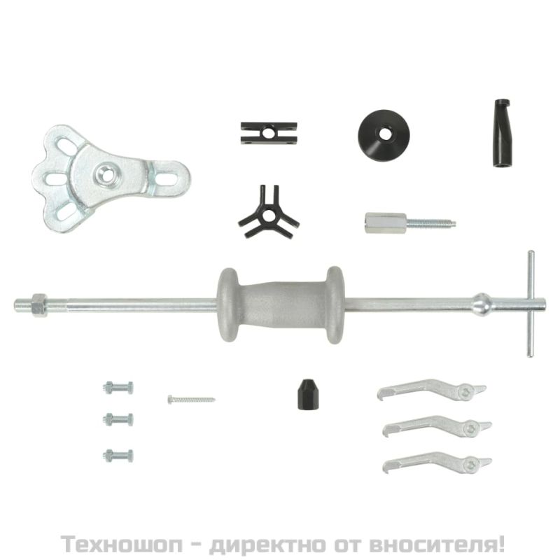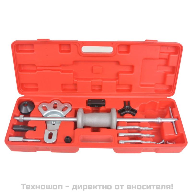 Този универсален инструмент е чудесен за изваждане на задните оси, за повечето главини с предно предаване и много други. Също може да премахва и вдлъбнатини, причинени от удар с друг автомобил или от градушка. Комплектът включва скоба (2,26 кг), която прецизно изважда и в най-тесните области. Външните и вътрешните скоби имат множество комбинации, с които да изваждате лагери, зъбни колела, уплътнения. Също включва накрайник, кука за изваждане и инструмент за издърпване на вдлъбнатини. Изработен от закалена стомана, този инструмент притежава максимална здравина и може да ви служи вярно с години. В доставката е включено и здраво куфарче за транспорт и съхранение.