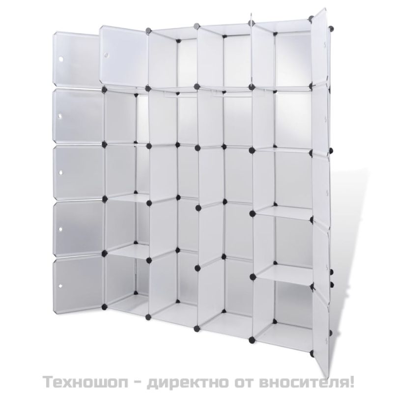 Модулен шкаф с 14 отделения, бял, 37x146x180,5 см