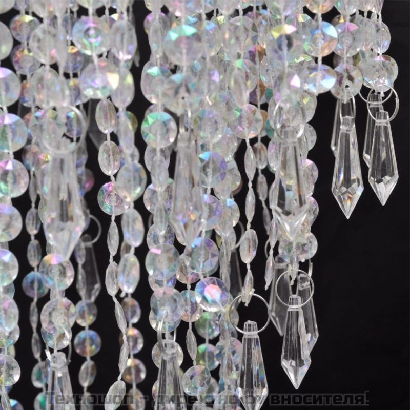 Този великолепен полилей с класически и елегантен дизайн със сигурност привлича погледите във всяка стая и е идеален както за частни, така и за промишлени цели. Благодарение на кралския си дизайн този зашеметяващ полилей е идеален за вашето фоайе, трапезария или всекидневна. Висококачествените мъниста, които блестят с истинска чистота, улавят и отразяват светлината ефективно, а спектърът ви предоставя великолепна игра на цветовете. С тази елегантна висяща лампа можете да украсите дома си по луксозен начин. Крушката не е включена в доставката ни.