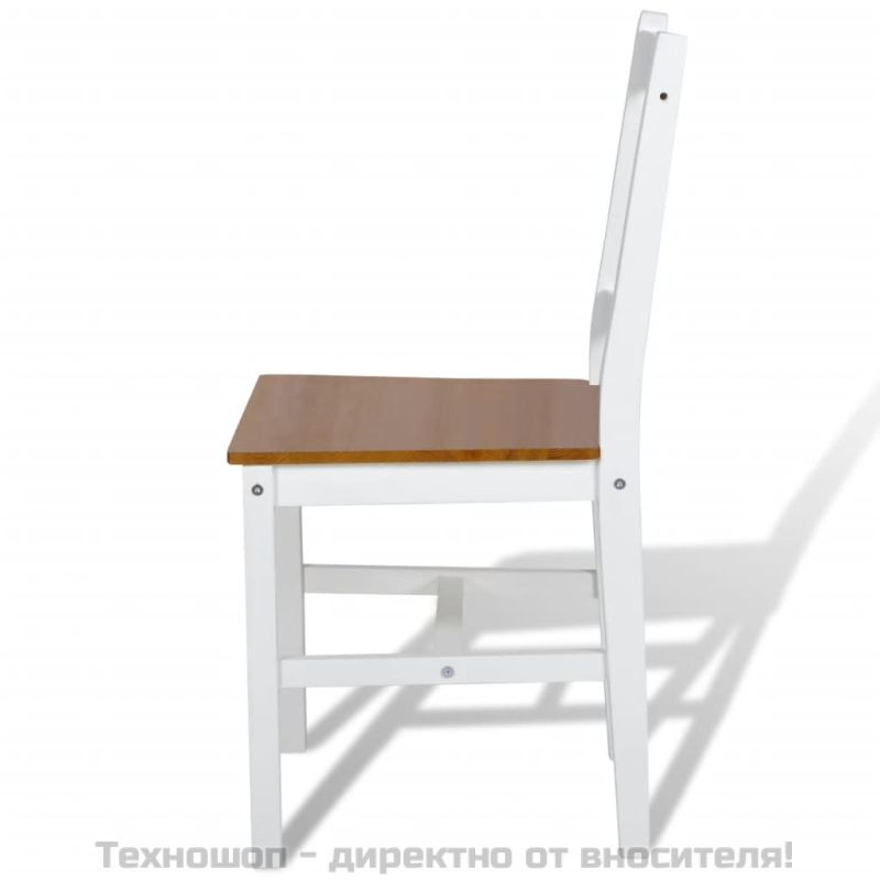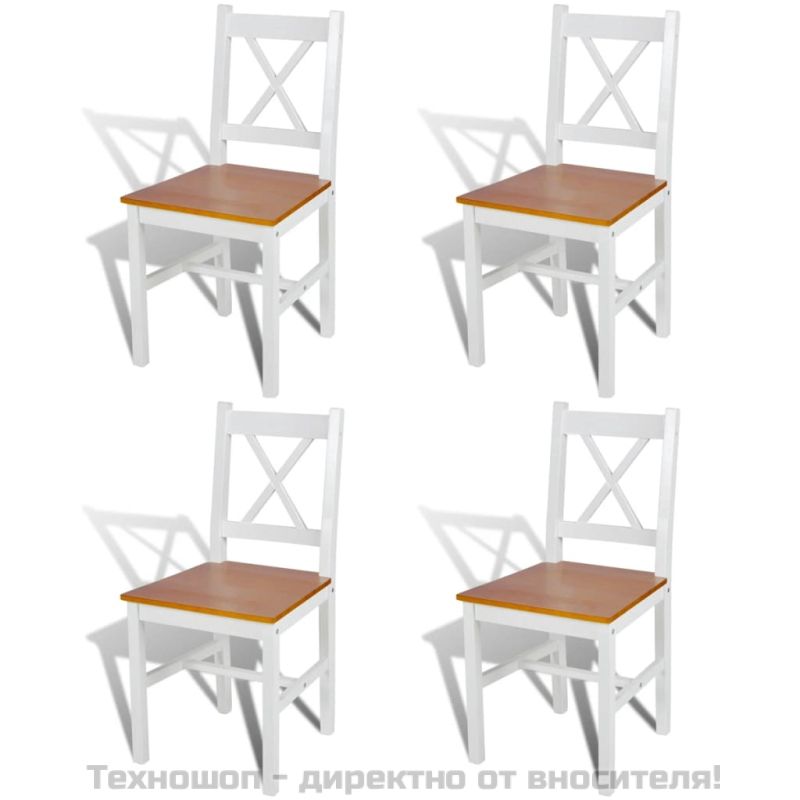Този трапезен комплект столове със семпъл, но елегантен дизайн, се състои от 4 стола и ще бъде чудесно допълнение към вашата трапезария или кухня.Столовете са изработени от масивна борова дървесина, което ги прави много стабилни и издръжливи. Трапезните столове са лесни за почистване, благодарение на гладката им боядисана повърхност. Те са ергономично проектирани за допълнителен комфорт.Доставката включва 4 трапезни стола. Максимално 110 кг на седалка.