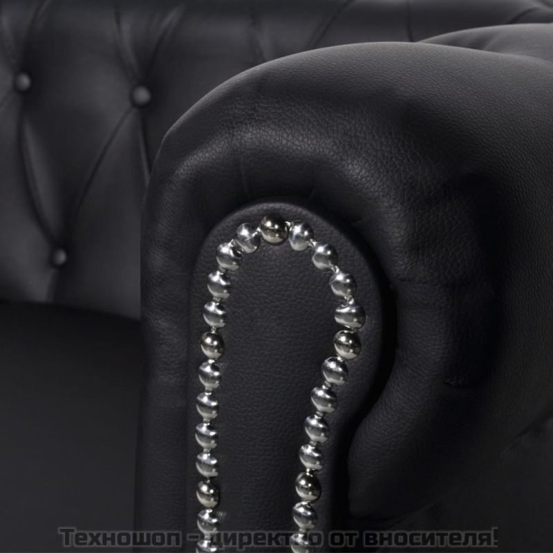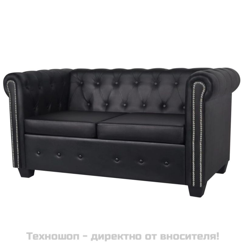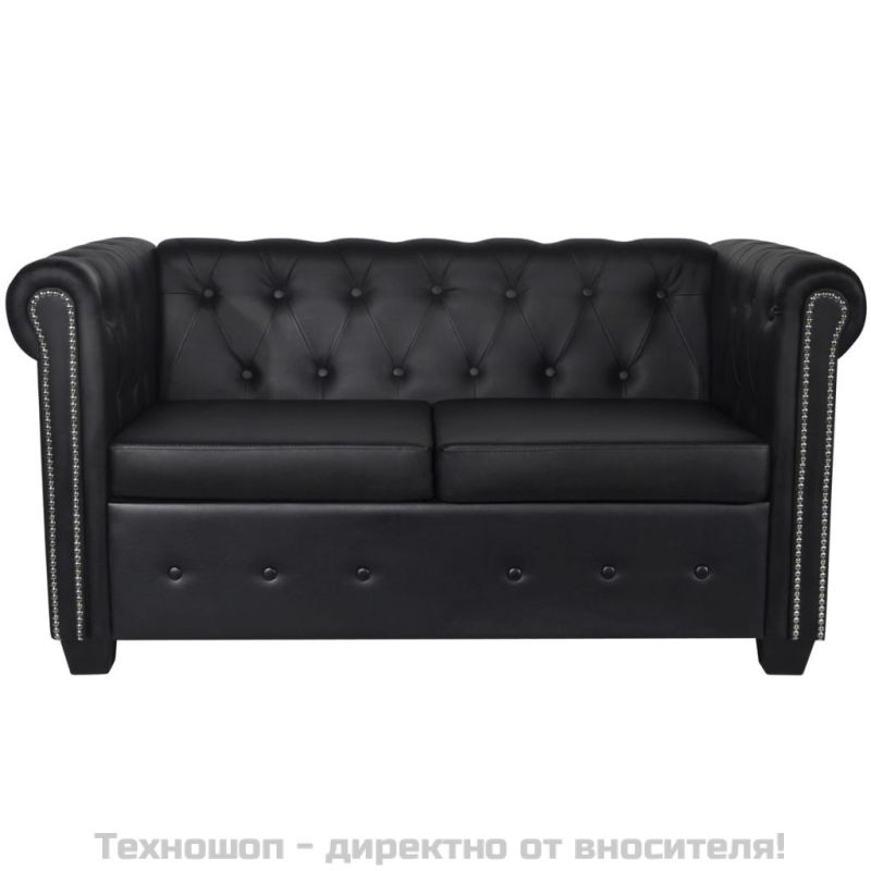Честърфийлд 2-местен диван изкуствена кожа черен