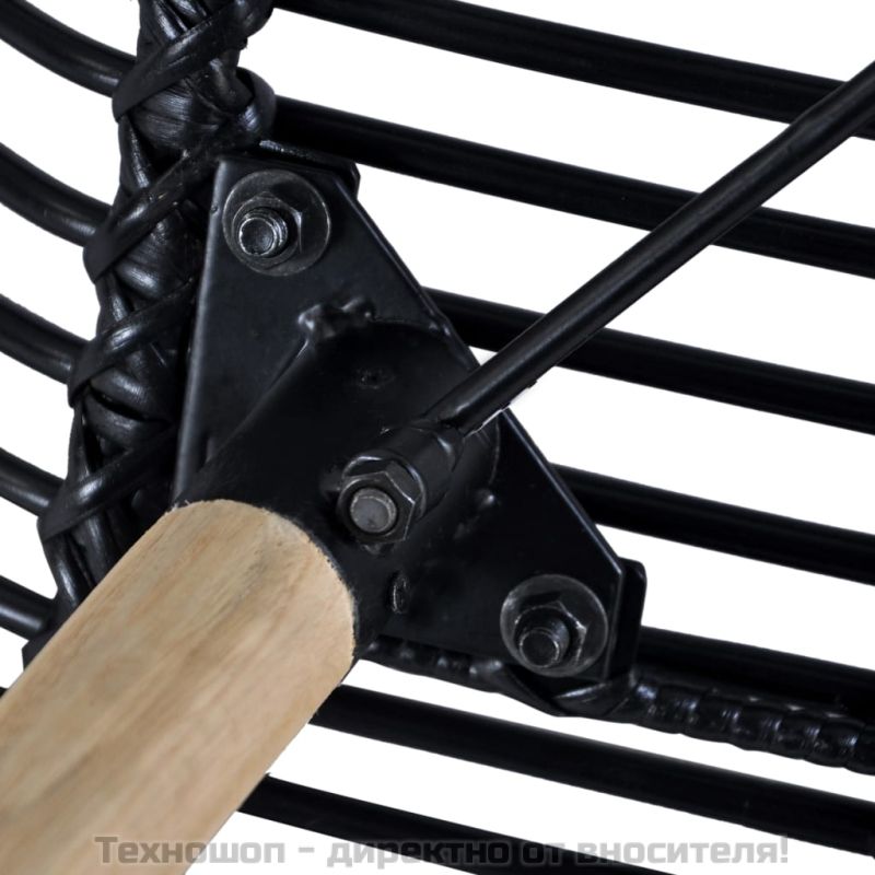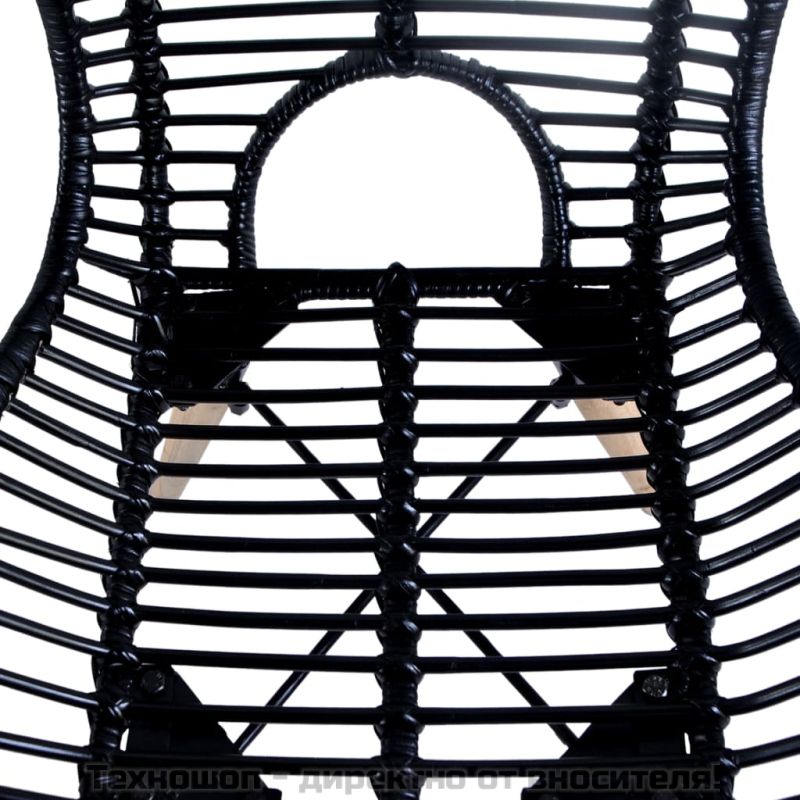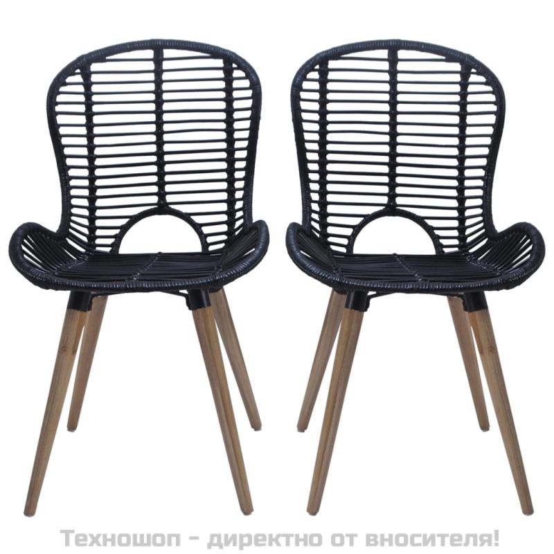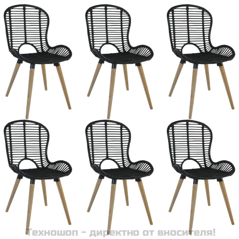 Трапезни столове, 6 бр, черни, естествен ратан