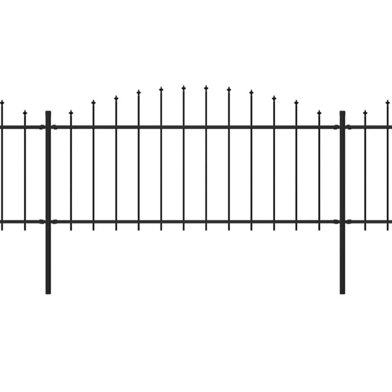 Градинска ограда с пики, стомана, (0,5-0,75)x3,4 м, черна