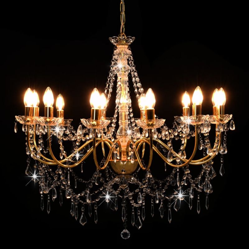 Полилей с кристали, златист, 12 х Е14 крушки