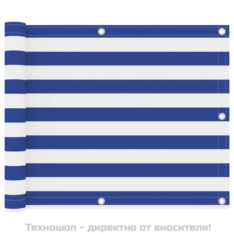 Начало Дом и градина Двор и градина Живот на открито Градински чадъри и сенници Балконски параван, бяло и синьо, 75x400 см, оксфорд плат