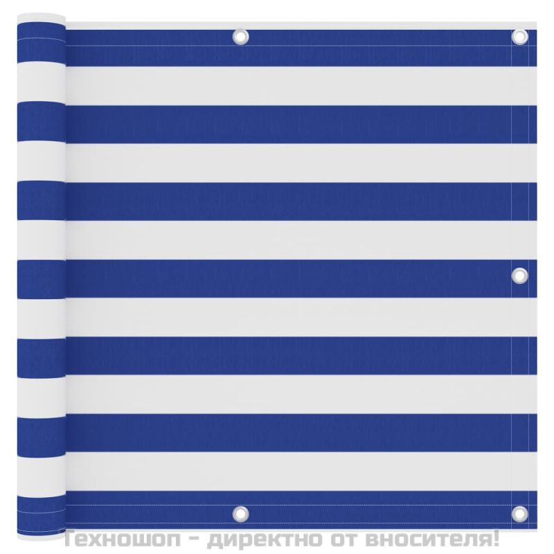 Балконски параван, бяло и синьо, 90x500 см, оксфорд плат
