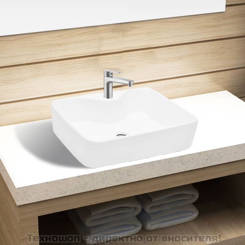 Керамична мивка с отвор за смесител, бяла, квадратна