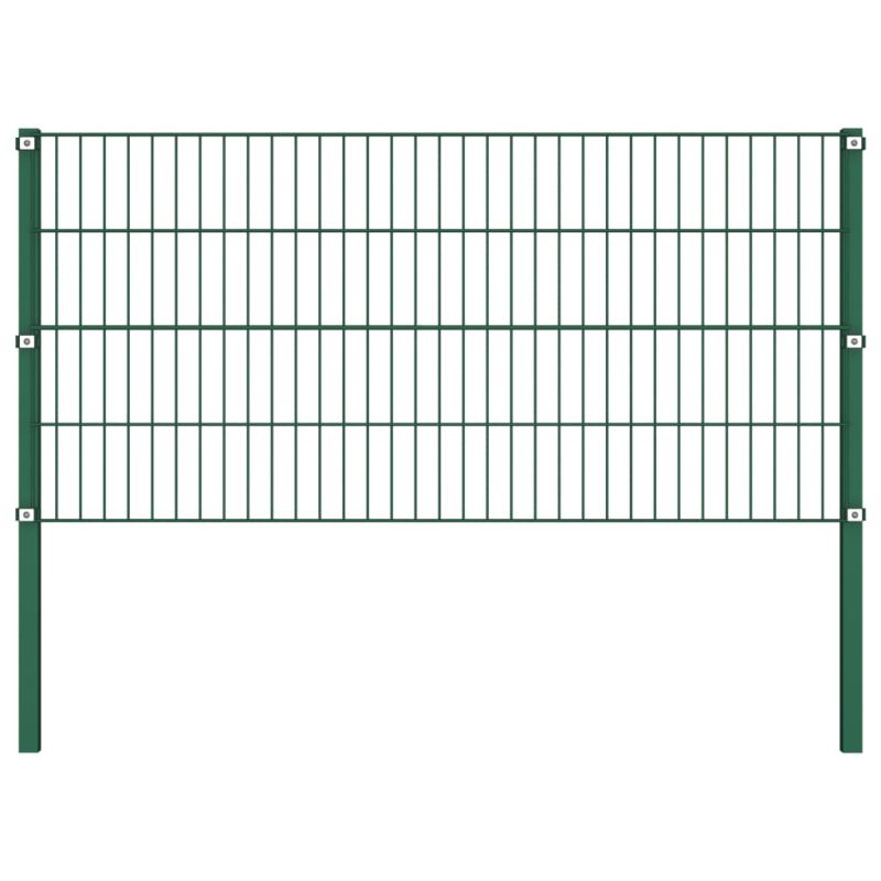 Със семпъл, но практичен дизайн, този комплект градински оградни панели с колове ще подхожда перфектно на всяка градина. Изработен от устойчиво на атмосферни влияния и корозия прахово боядисано желязо, този комплект оградно пано е изключително здрав и издръжлив. Оградният комплект е лесен за поставяне и ще образува страхотна преграда, която да държи нежеланите гости далеч от вашата градина или вътрешен двор. Доставката включва 4 х 2 D оградни панела и 3 кола.