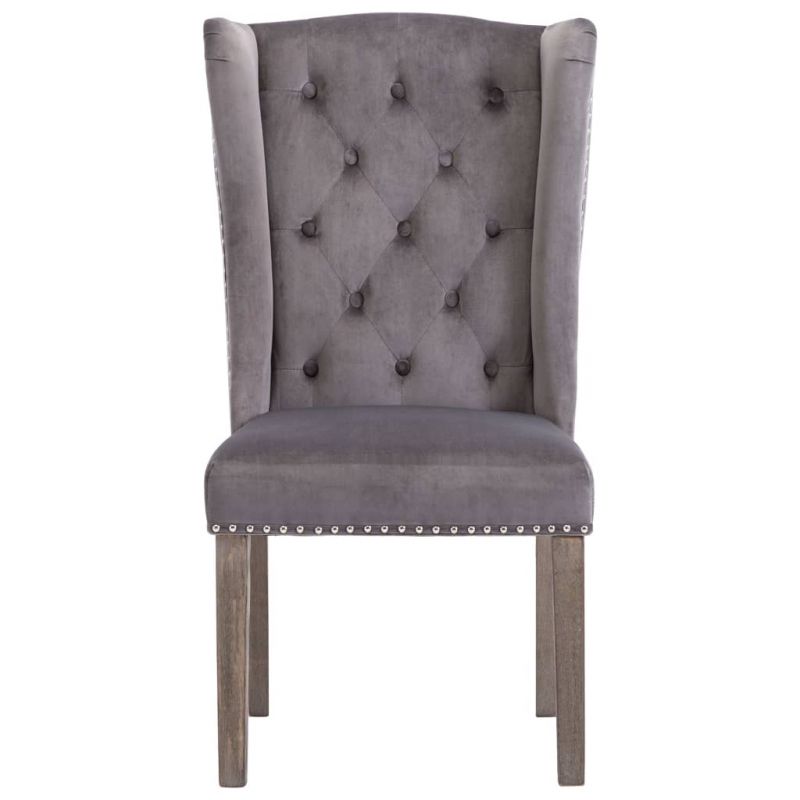 Искате ли да добавите класически вкус към вашата трапезария? Нашият трапезен стол е тук! Този трапезен стол, тапициран с мека на допир кадифена материя, осигурява удобно място за хранене, четене или просто почивка. Декоративните копчета на облегалката и металните нитове по ръбовете увеличават класическата красота на стола. Поддържан от масивни крака от каучуково дърво, трапезният стол е стабилен и издръжлив. Максимално 110 кг на седалка.