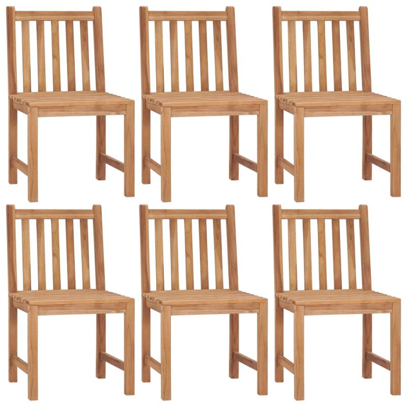 Този изключително стабилен комплект дървени градински столове е идеалното място за отдих и любуване на слънцето в градината или вътрешния двор. Тази мебел от тик е изработена от изключително издръжлива тикова твърда дървесина, която е суха – изсушена в пещ, а след това фино шлифована, за да ѝ се придаде много гладък вид. Тиковото дърво е известно с изключителната си здравина и устойчивост на атмосферни влияния, което го прави далеч по-подходящо за градински мебели от всеки друг вид дърво. Тиковата дървесина е идеалният избор, ако искате да закупите дълготрайна градинска мебел. Завършени са с красиво покритие на водна основа, което да придаде на дървото топъл цвят. Стабилните градински столове се отличават с изискана форма и веднага ще се впишат във всяко жилищно пространство. Включената възглавница е практична и има декоративна функция. Забележка: За да удължите живота на вашите градински мебели, препоръчваме ви да ги почиствате редовно и да не ги оставяте ненужно на открито без защита.Почистване: Използвайте мек сапунен разтворСъхранение: Ако е възможно, съхранявайте на хладно и сухо място на закрито. Ако продуктът се съхранява на открито, защитете го с водоустойчиво покривало. Избършете и изсушете излишната вода или сняг от плоските повърхности след дъжд или снеговалеж. Осигурете достатъчно циркулация на въздух, за да избегнете повреди, свързани с влагата. Максимално 110 кг на седалка.