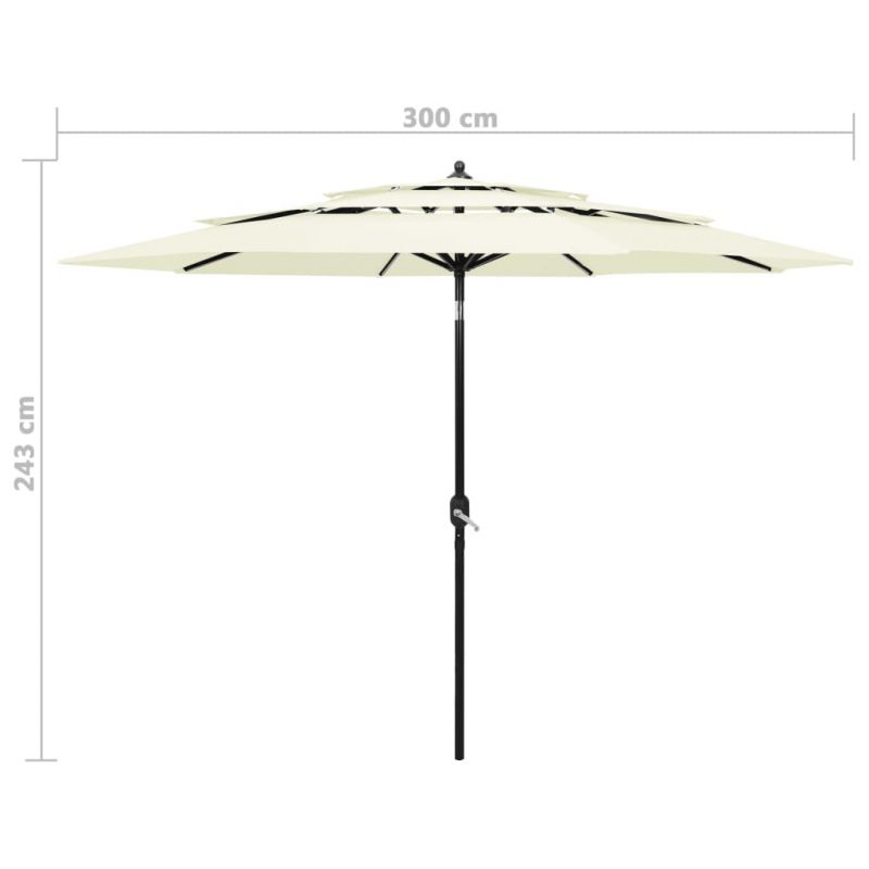 Градински чадър на 3 нива с алуминиев прът, пясъчен, 3 м