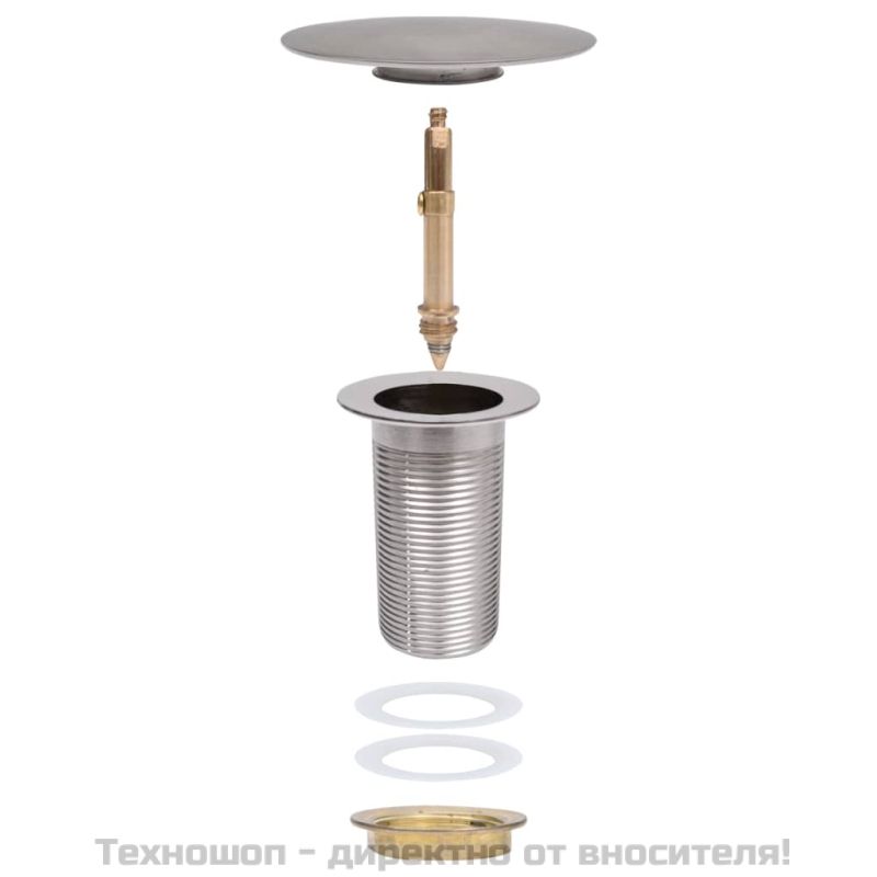 Този сифон клик-клак без преливник има проста и практична структура и е предназначен да бъде най-добрият избор за вашата баня. Изработен от цинк и месинг, този сифон е издръжлив и осигурява дълъг експлоатационен живот. Размерът на резбата е 1¼ инча. Освен това разполага с прост клик-клак механизъм, лесен за използване и почистване.