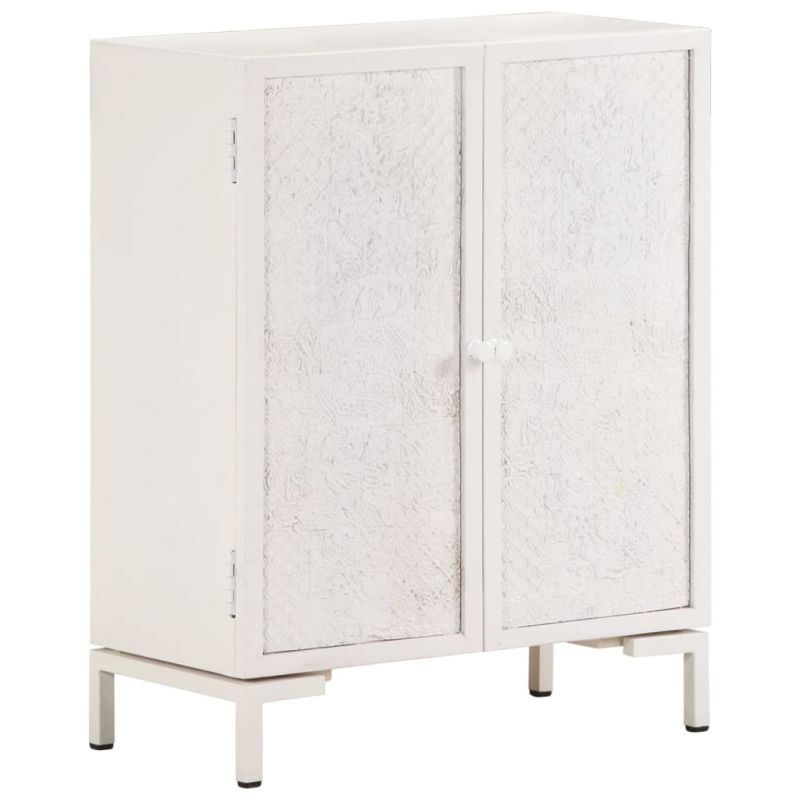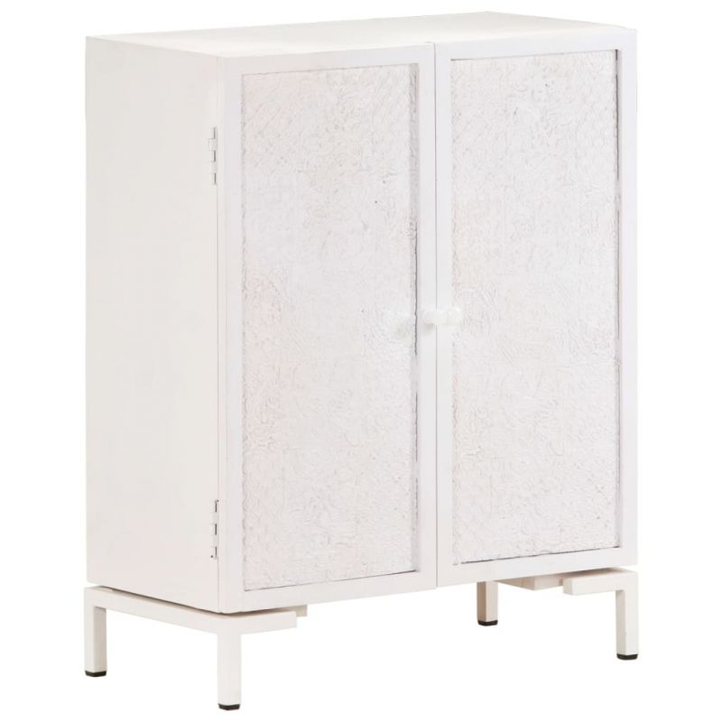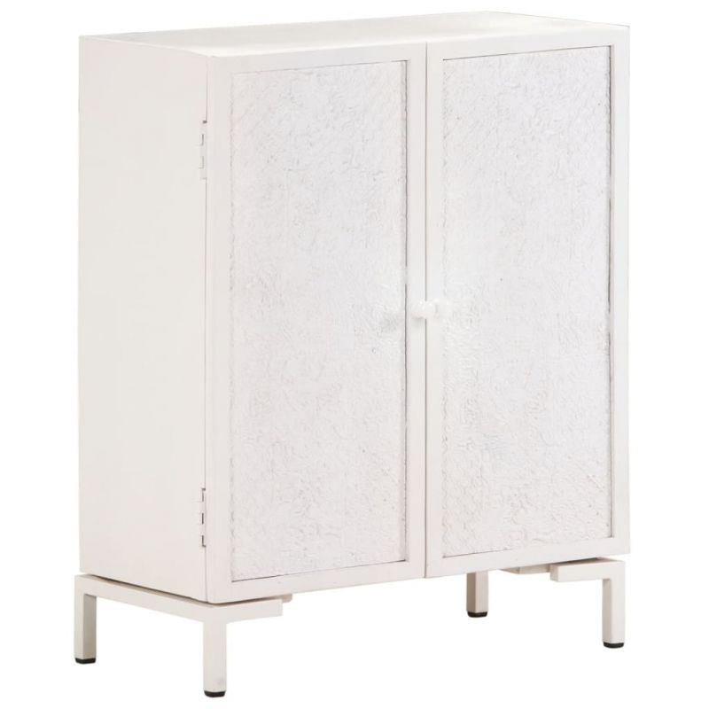 Ако търсите семпъл рустик и индустриален чар, който да добавите към вашия интериор, този дървен бюфет ще подходи идеално за целта. Страничният шкаф е изработен от мангово дърво масив – тропическа твърда дървесина със силата да понесе тежестта. Освен това тя издържа на износването на времето, което прави шкафа стабилен и издръжлив. Прахово боядисаната желязна рамка също придава допълнителна стабилност. Този шкаф разполага с 2 врати и осигурява достатъчно място за съхранение. Освен това здравият дървен плот е идеален за поставяне на декоративни предмети, като фоторамки, саксийни растения, вази и др. Важна забележка: Цветовете и шарките на мебелите могат да варират, което прави всеки артикул уникален; доставката е на случаен принцип.
