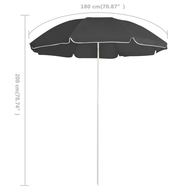 Градински чадър със стоманен прът, антрацит, 180 см