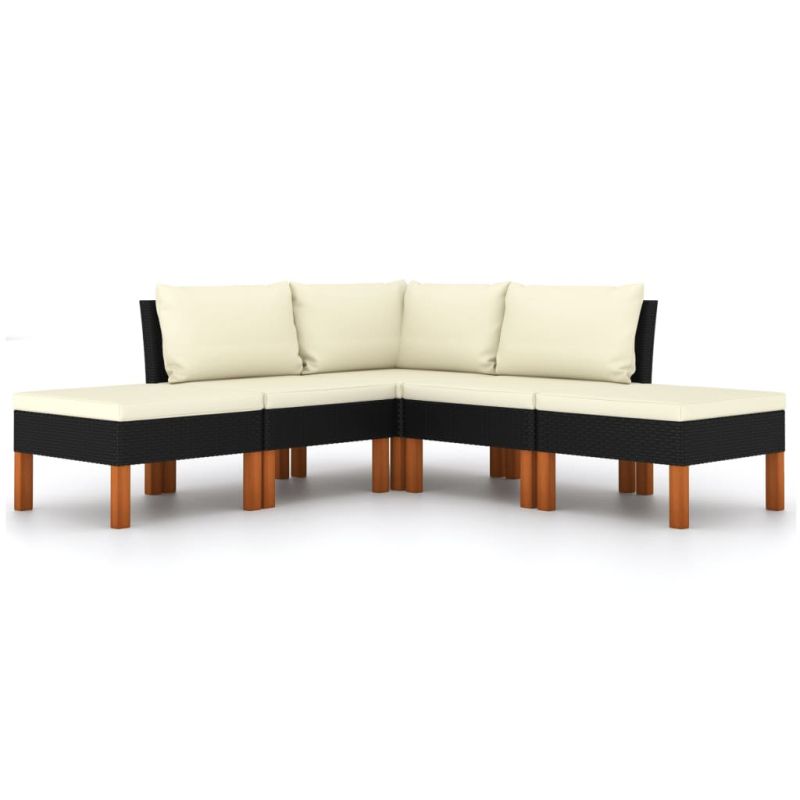 Градински комплект с възглавници, 5 части, черен полиратан