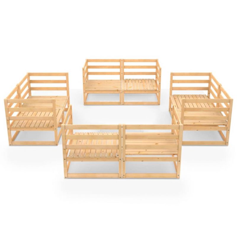 Този градински комплект за отдих е отличен избор за релакс и наслада на времето, за дрямка или разговори със семейството или приятелите ви. Комплектът за отдих на открито е изработен от масивна борова дървесина, което го прави здрав и стабилен. Можете да го комбинирате с други модулни елементи, за да създадете собствени конфигурации на градинска зона за отдих! Забележка: За да удължите живота на вашите градински мебели, ви препоръчваме да ги защитите с водоустойчиво покривало. Максимално 110 кг на седалка.