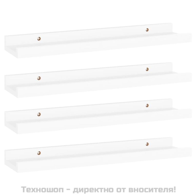 Стенни рафтове, 4 бр, бели, 40x9x3 см