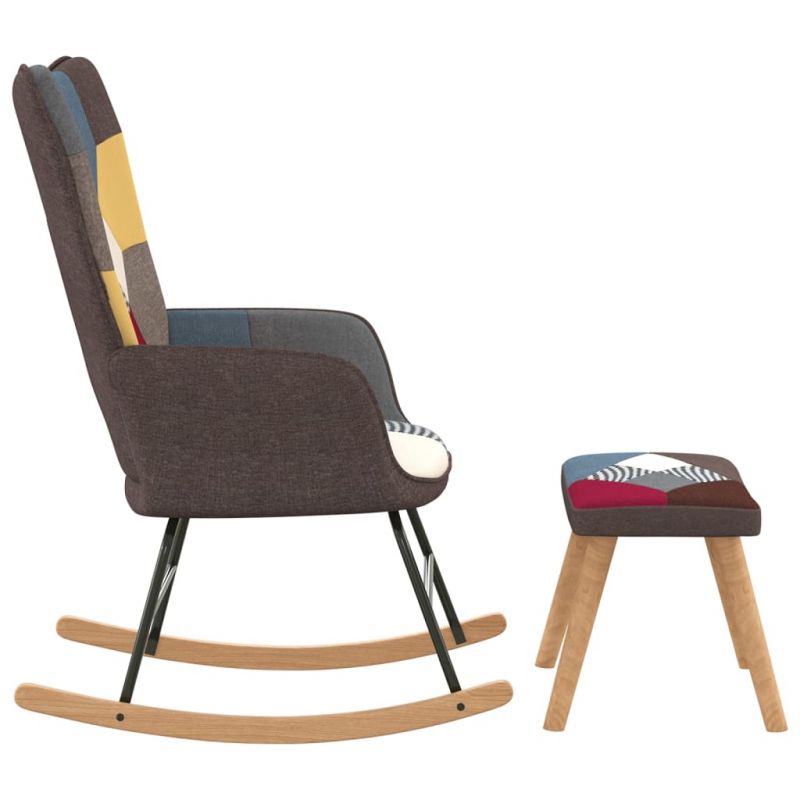 Този люлеещ стол с табуретка е отлично допълнение към съществуващия декор на дома ви. Това кресло с ярък пачуърк дизайн е естетически приятно. Благодарение на подплатата с дунапрен, тапицирана с мека на допир материя, можете да се насладите на оптимален комфорт по време на седене. Благодарение на дизайна с дълги релси за люлеене, столът за релакс няма да се преобърне лесно. Поддържан от стоманена рамка и крака, както и от дървени релси за люлеене, фотьойлът за всекидневна е стабилен и издръжлив.