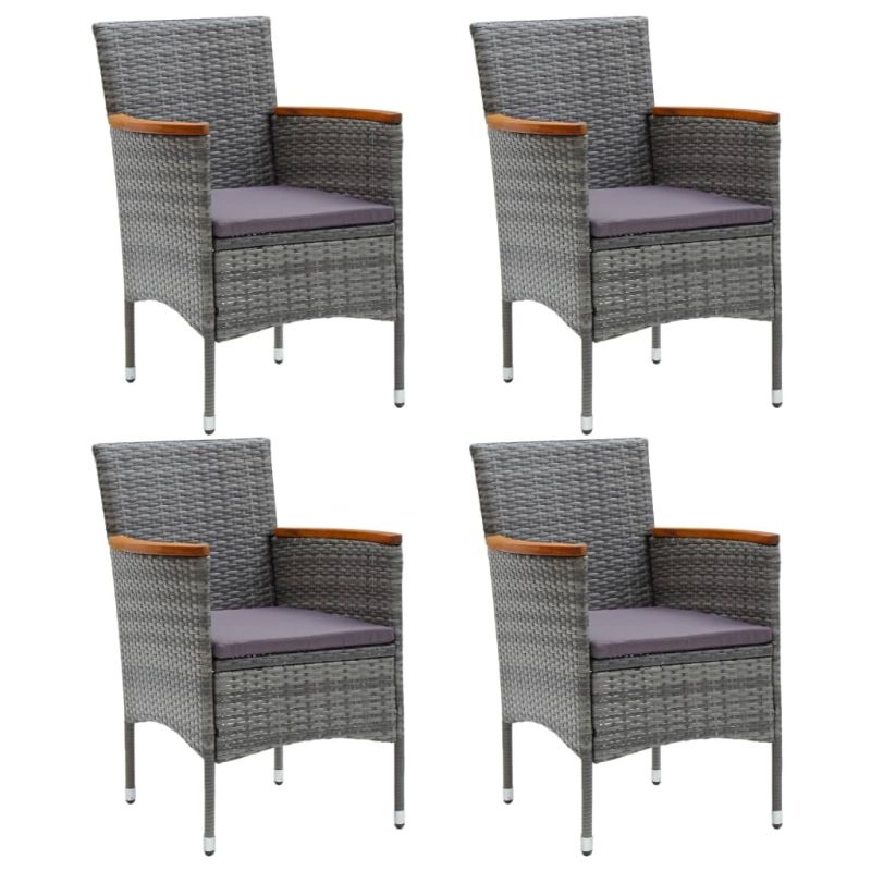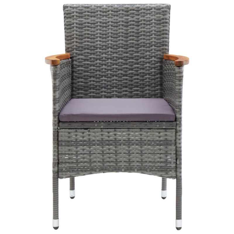 Създайте завладяваща и сплотена естетика във вашето открито пространство с този трапезен комплект за градина! Трапезната маса е изработена от масивна акациева дървесина с маслено покритие, което я прави стабилна, издръжлива и лесна за поддръжка. Прахово боядисаната стоманена рамка, покрита с устойчив на атмосферни влияния РЕ ратан, прави тези трапезни столове здрави и лесни за почистване. Градинският стол, проектиран с извита облегалка и подлакътници, се отличава с по-ергономична форма за максимален комфорт. Подлакътниците са красиво декорирани с масивна акациева дървесина, която носи усещане за рустик чар. Освен това плътно подплатените възглавници осигуряват максимален комфорт при седене. Важна забележка: Препоръчваме покриването на трапезния комплект по време на дъжд, сняг и скреж с цел максимално продължителна употреба. Максимално 110 кг на седалка. Съобразете се с риска от открит огън и други източници на силна топлина в близост до продукта.