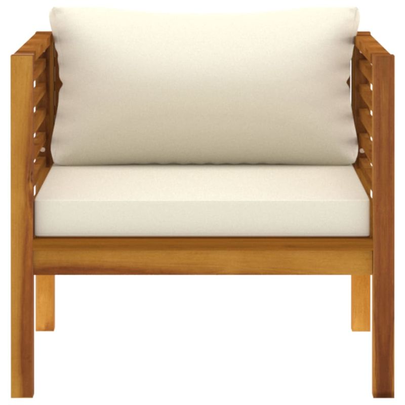 Градински стол с кремавобели възглавници, акациево дърво масив