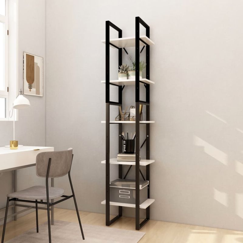 5-етажна библиотека, бяла, 40x30x175 см, борово дърво масив