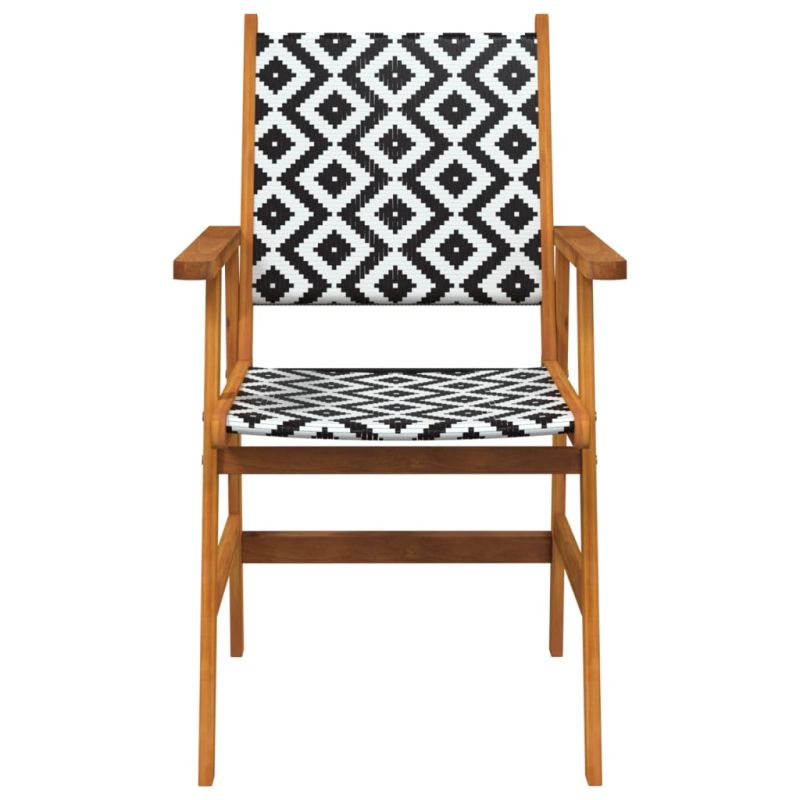 Тези дървени градински столове осигуряват идеалното място за отдих и любуване на слънцето в градината или вътрешния двор. Благодарение на облегалката и зоната за сядане от полиратан тези столове за открито могат да осигурят максимален комфорт при сядане и да се почистват лесно. Стабилните трапезни столове се отличават с изискана визия, която може незабавно да се впише във всяко жилищно пространство. Използвайте тези градински столове, за да добавите нотка на забавление и комфорт във вашата градина или вътрешен двор! Забележка: За да удължите живота на вашите градински мебели, ви препоръчваме да ги защитите с водоустойчиво покритие.