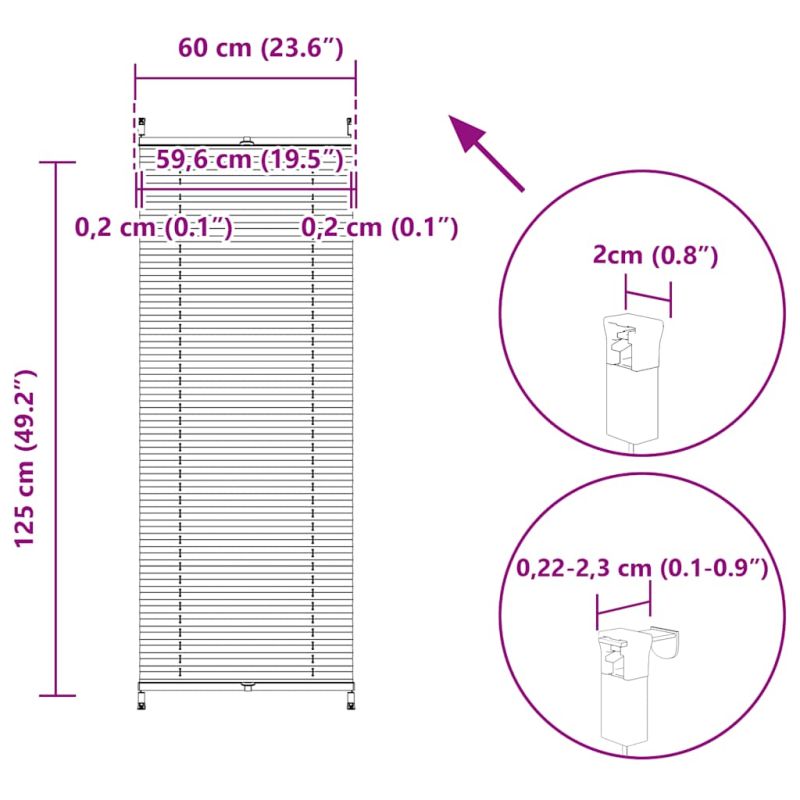 Тази плисирана щора е идеална за защита от слънце и външно наблюдение. Тя може да се регулира от отдолу и отгоре, за да задоволи вашите потребности при най-различни поводи и нужди.Модерните плисета, подобни на вълни, създадени от бриза на морето, ограничават визията отвън, но и са отлична декорация за вашата стая.Плисираната щора се монтира с помощта на затягащ държач, без да се пробива стената, прозореца или вратата, идеални са за вилата, всекидневната, спалнята, банята, кухнята, трапезарията, офиса, заседателната зала, приемната и др.Предлага се в различни размери:40 x 100, 50 x 100, 60 x 100, 70 x 100, 80 x 100, 90 x 100, 100 x 100, 110 x 10040 x 125, 50 x 125, 60 x 125, 70 x 125, 80 x 125, 90 x 125, 100 x 125, 110 x 12540 x 150, 50 x 150, 60 x 150, 70 x 150, 80 x 150, 90 x 150, 100 x 150, 110 x 15040 x 200, 50 x 200, 60 x 200, 70 x 200, 80 x 200, 90 x 200, 100 x 200, 110 x 200.Може да намерите тази, която ще подхожда най-добре на вашето оформление. ВНИМАНИЕ! Малките деца могат да бъдат удушени от примки в дърпащи въжета, вериги, ленти и вътрешния кабел, който управлява този продукт. За да избегнете удушаване и оплитане, дръжте кабелите далеч от обсега на малки деца. Шнурите могат да се увият около врата на детето. Преместете леглата, креватчетата и мебелите далеч от въжетата за покриване на прозорци. Не завързвайте кабелите заедно. Уверете се, че кабелите не се усукват и образуват примка. ВНИМАНИЕ! Децата може да се задушат, ако това предпазно устройство не е инсталирано. Винаги използвайте това устройство, за да задържате шнуровете или верижките на място, недостъпно за деца. GPSR