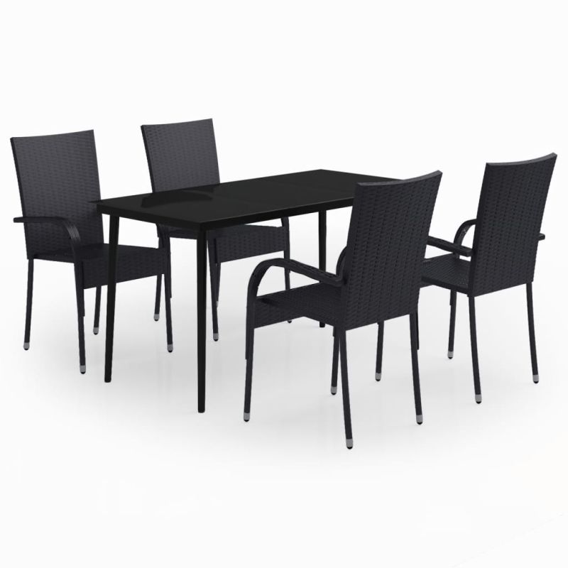 Градински трапезен комплект, 5 части, черен