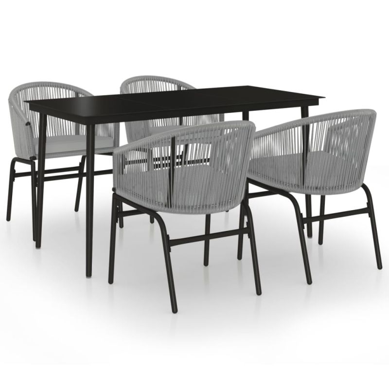 Създайте завладяваща и сплотена естетика във вашето външно пространство с този градински трапезен комплект! Този градински трапезен комплект е изработен от прахово боядисана стоманена рамка, което го прави здрав и стабилен за ежедневна употреба на открито. Гладкият стъклен плот се почиства лесно с влажна кърпа и е идеален за поставяне на ястия, напитки и различни декоративни предмети. Столове за вътрешен двор са изработени от PVC ратан, което ги прави издръжливи и устойчиви на лошо време и UV лъчи. Освен това всяка седалка е снабдена с подвижна дебело подплатена възглавница за допълнителен комфорт по време на излежаване. Забележка: За да удължите живота на вашите градински мебели, ви препоръчваме да ги защитите с водоустойчиво покритие.