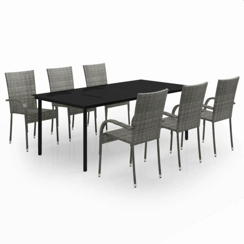 Този градински трапезен комплект е чудесен избор за хранене или почивка на открито! Прахово боядисаните стоманени рамки правят масата и столовете здрави и стабилни за ежедневна употреба на открито. Благодарение на водоустойчивия PE ратан, столовете са лесни за почистване и подходящи за ежедневна употреба. Гладкият стъклен плот се почиства лесно с влажна кърпа и е идеален за поставяне на ястия, напитки и различни декоративни предмети. Забележка: За да удължите живота на вашите градински мебели, ви препоръчваме да ги защитите с водоустойчиво покривало. Максимално 110 кг на седалка.