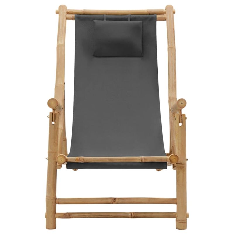 Стол шезлонг, бамбук и канава, тъмносив