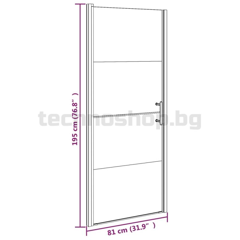 Врата за душ, 81x195 см, полуматирано закалено стъкло, черна
