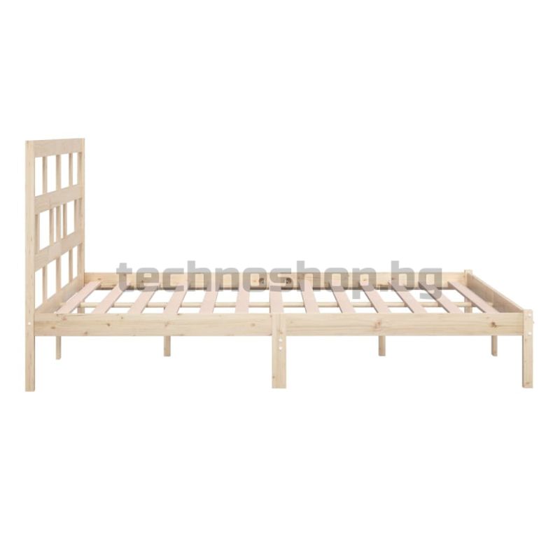Модернизирайте вашата спалня с тази дървена рамка за легло! Тя ще се превърне в практично и декоративно допълнение към вашия интериор. Първокласен материал: Масивната борова дървесина е красив естествен материал. Боровата дървесина има прави шарки, а възлите придават на материала характерния му рустик вид.Здрави ламели: Ламелите от шперплат осигуряват добро разпределение на теглото, като гарантират, че матракът остава на място при всяко завъртане на тялото ви по време на сън.Удобна табла за глава: Класическата табла ви позволява да си починете удобно, докато четете или гледате филм. Добре е да се знае:Доставката включва само рамка за легло. Матракът не е включен. Можете да проверите в нашия магазин за подходящи матраци.Някои части на таблата са опаковани в картонени кутии на рамката на леглото поради ограничения в пространството.Тази рамка за легло е подходяща за матрак с размери 200x200 см.