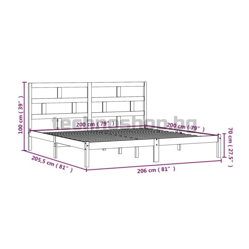 Рамка за легло, бор масив, 200x200 см