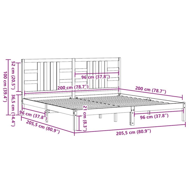 • Размери на рамката за легло: 205,5 x 205,5 x 31 см (Д x Ш x В)