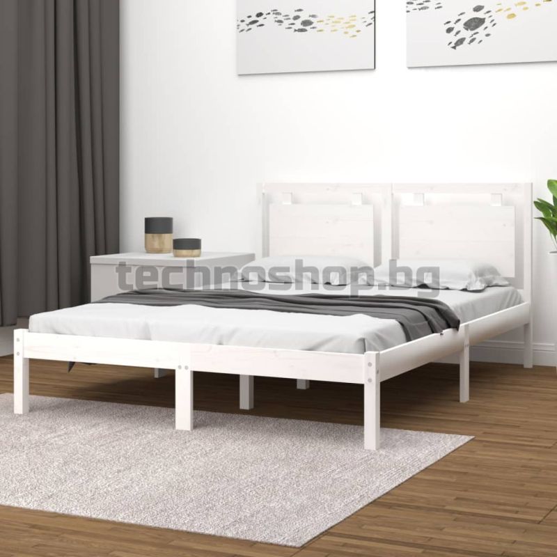 Рамка за легло, бяла, дърво масив, 160х200 см