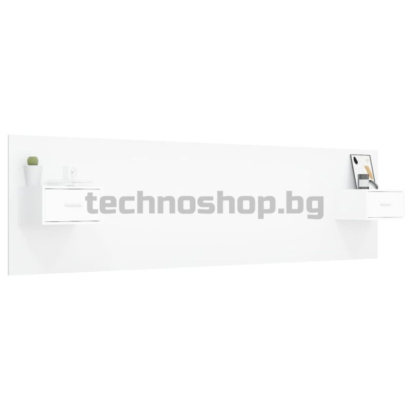 Горна табла за легло с шкафчета, бяла, инженерно дърво