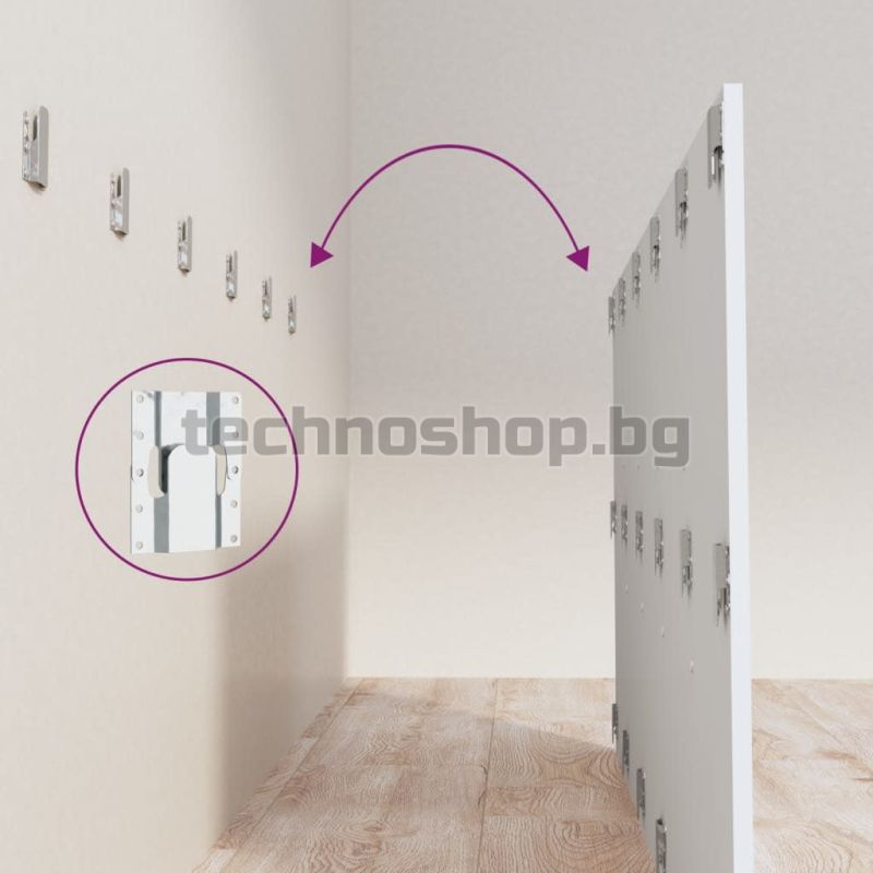 Здравата табла за легло с шкафчета и класически дизайн придава завършен вид на рамката на леглото и е подходяща за всяка спалня. Издържлив материал: Инженерната дървесина е с изключително качество с гладка повърхност и също така се отличава със здравина, стабилност и устойчивост на влага.Дизайн за стенен монтаж: Окачените нощни шкафчета и таблата могат да бъдат монтирани на стена. По този начин можете да увеличите максимално площта на пода и да поддържате пространството подредено.Място за съхранение: Нощното шкафче разполага с просторно място за съхранение, което ви позволява да държите нещата си организирани. Внимание:Винт(ове) и щепсел(и) за вътрешността на стената не са включени. Търсете и използвайте винт(ове) и дюбел(и), подходящи за вашите стени. Ако не сте сигурни, потърсете професионална помощ. Прочетете и следвайте внимателно всяка стъпка от инструкциите.