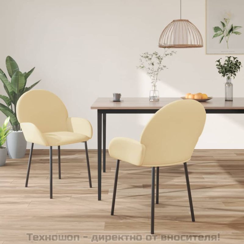Трапезни столове, 2 бр, кремави, кадифе