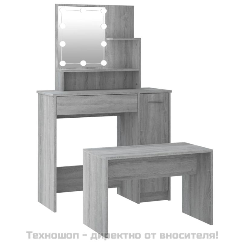 Комплект тоалетка с LED, сив сонома, инженерно дърво