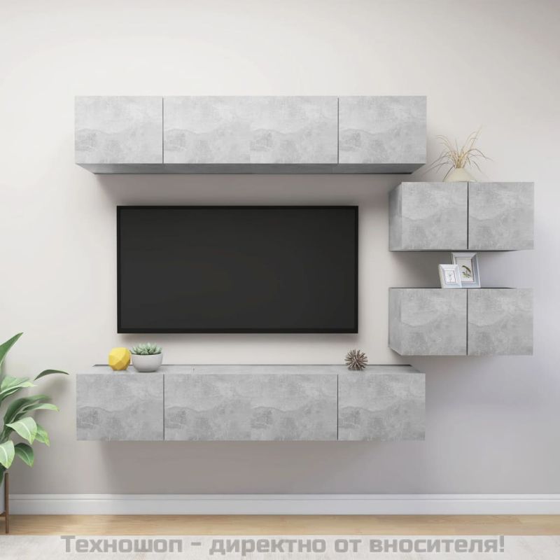 Комплект ТВ шкафове от 6 части, бетонно сив, инженерно дърво