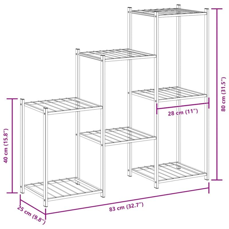 Стойка за цветя, 83x25x80 см, черна, желязо