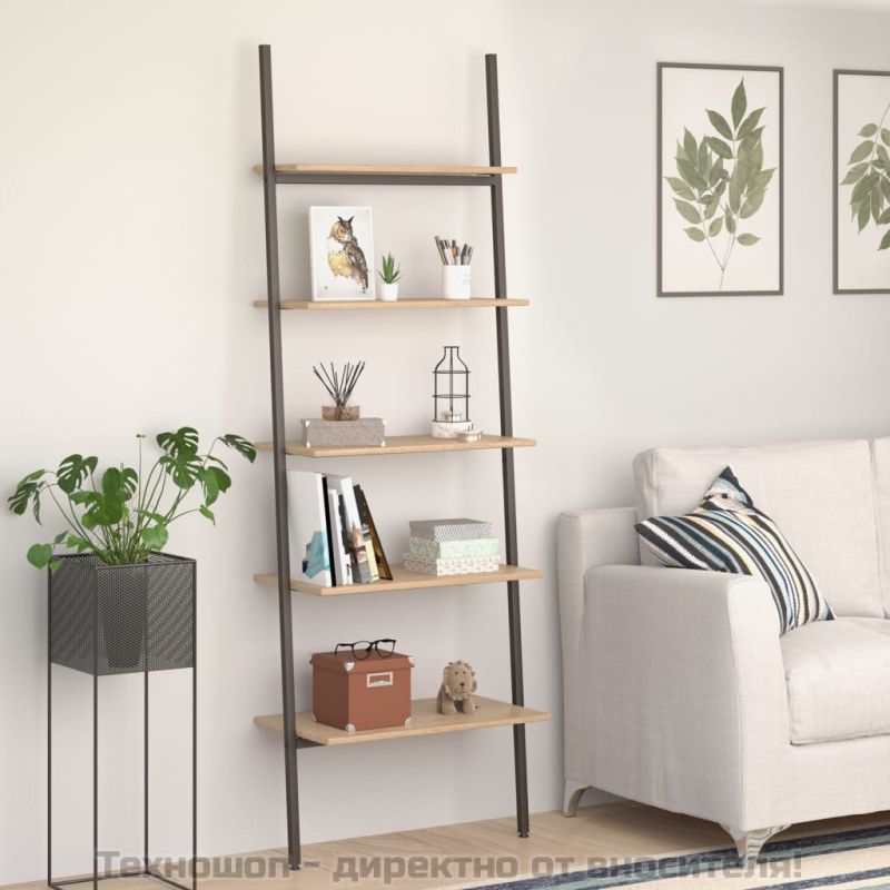 Етажерка стълба с 5 рафта светлокафяво и черно 64x34x185,5 см