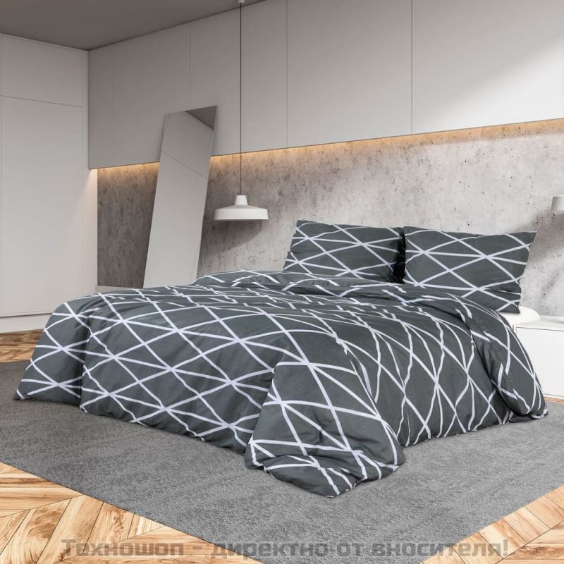 Комплект спално бельо, cиво, 135x200 см, памук