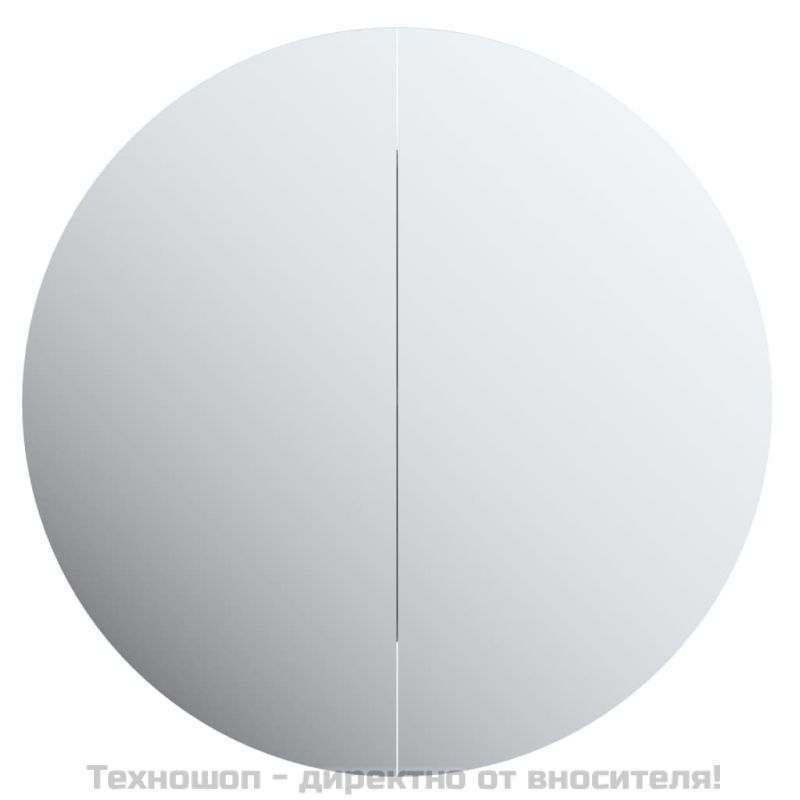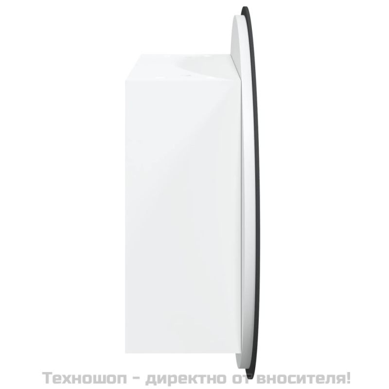 Шкаф за баня с кръгло огледало и LED, бял, 40x40x17,5 см