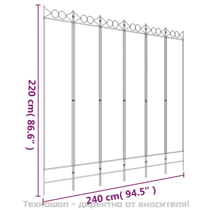 Параван за стая, 6 панела, бял, 240x220 см, текстил