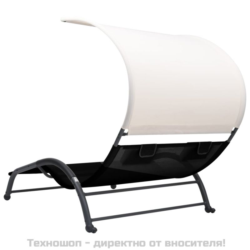 Двоен шезлонг със сенник, Textilene, черен