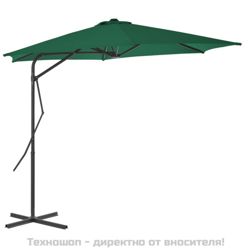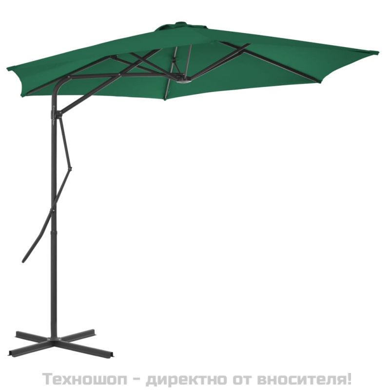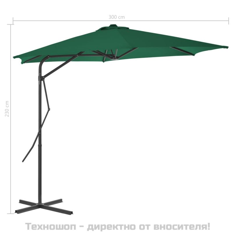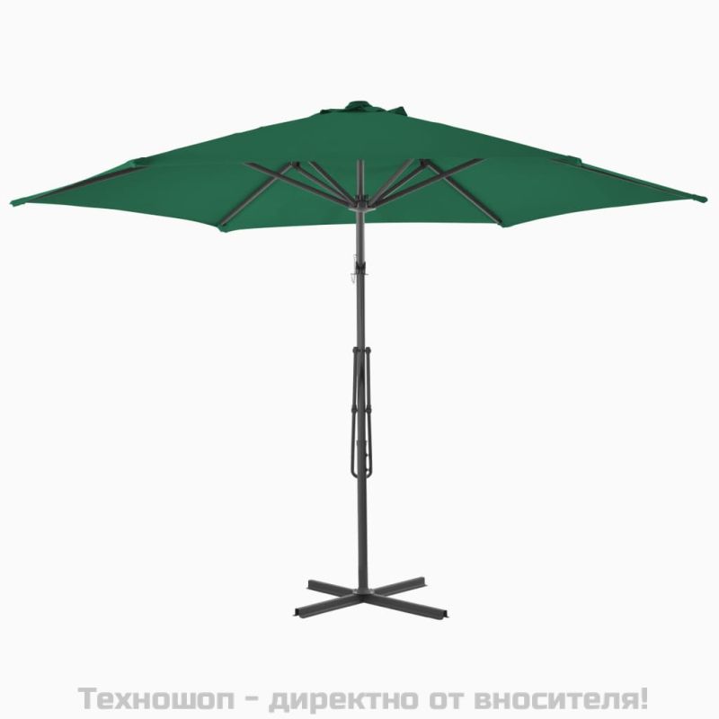 Градински чадър със стоманен прът, 300 см, зелен